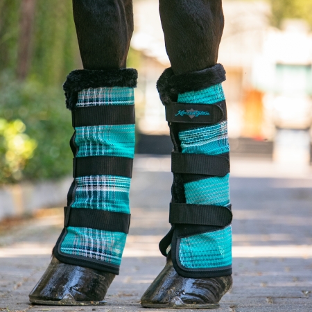 These are the only boots on the market today that have a plastic stay built under the Webbing to keep the boots upright and protect the legs. Kensington’s Protective Fly Boots feature 3 Hook and Loop closures and web trim for durability, and are made with Textilene®. These boots prevents injury from stomping by keeping flies from biting the horse’s legs. Sold in pairs of 2.