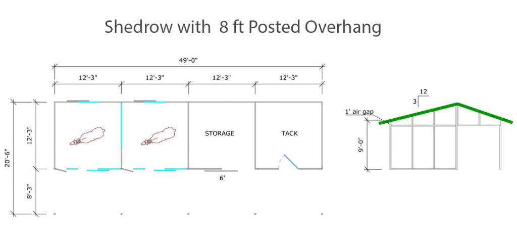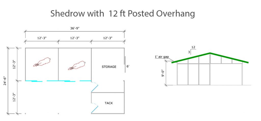 12’ posted porch standard, (4’ cantilever, 8’ posted options available) |